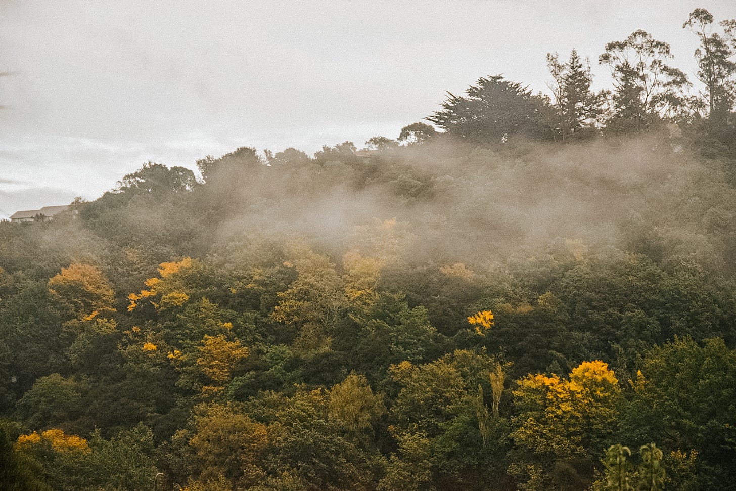 This view is my space for seasonal check ins. When I look across today, it is slowly turning the delicious tones of Autumn. There is a golden hue shadowing across the trees that will soon lose their leaves. In the coming months they will be skeletons of grey standing like ghosts amongst the evergreens. I have been waiting for this moment when it all changes because it is beautiful to watch. Earlier in the week a mist hung over the valley, adding an element of mystery to the view. This tendril of mist against the soft rusty tones of autumn spoke of mystery and moors. There is a house amongst the trees and I wonder if they are aware of how many eyes watch from across the valley. We are far enough away to see just the shape and silhouette of the house as it looks out across the valley, nothing more.